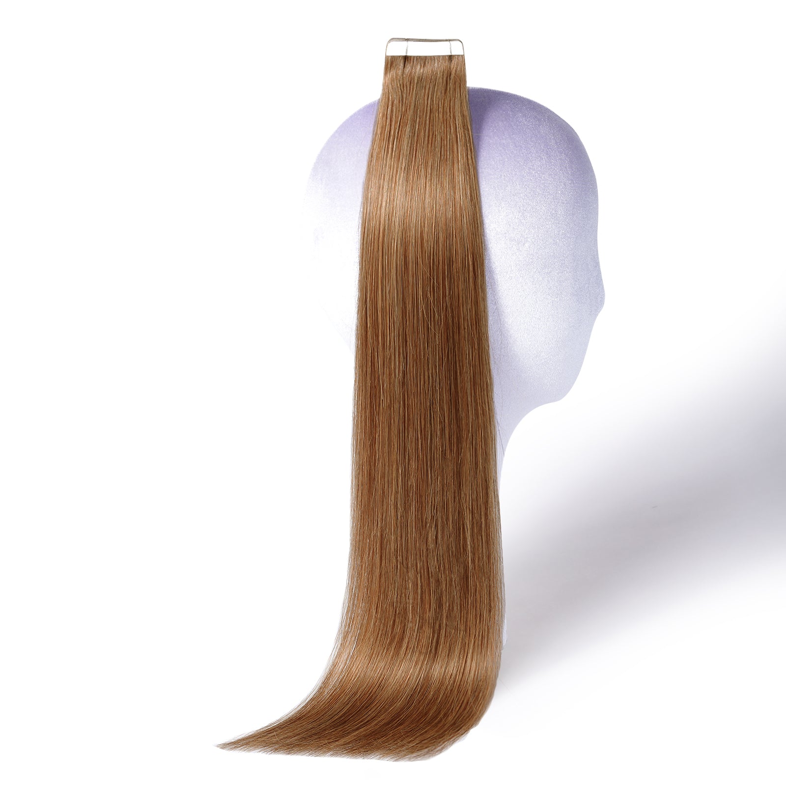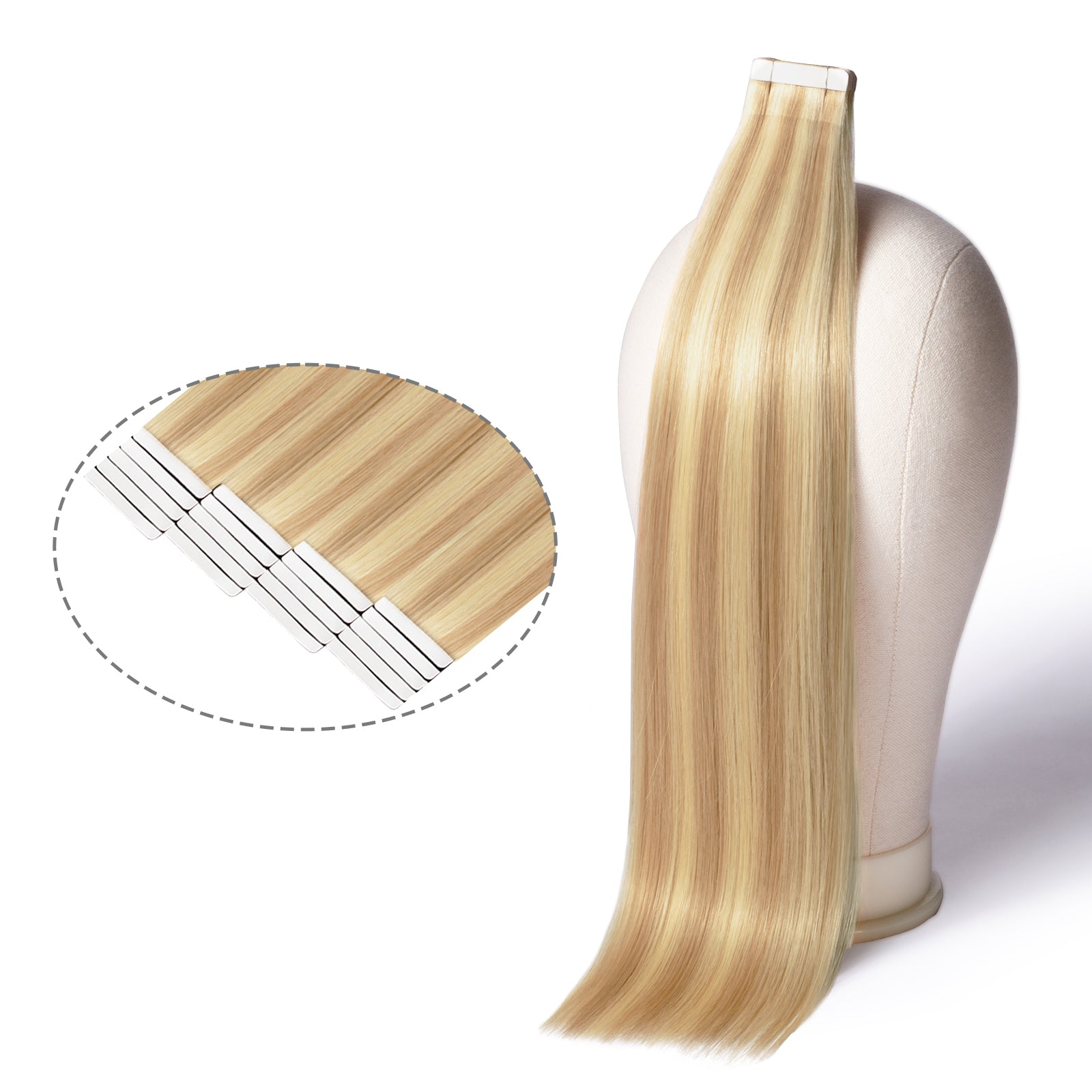 DNE Tape in Hair Extensions Real Human Hair 20Pcs/50g/Pack Seamless #27/613 Light Color Straight Invisible Double Sided Tape in Hair Extensions for Women/Girls Can Bleached and Curl