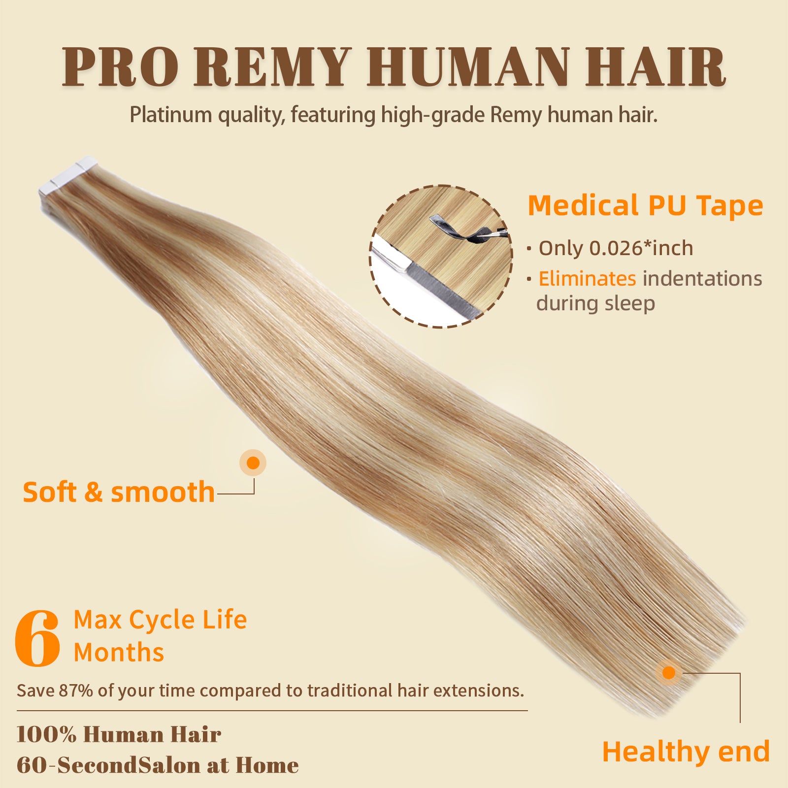 DNE Tape in Hair Extensions Real Human Hair 20Pcs/50g/Pack Seamless #27/613 Light Color Straight Invisible Double Sided Tape in Hair Extensions for Women/Girls Can Bleached and Curl