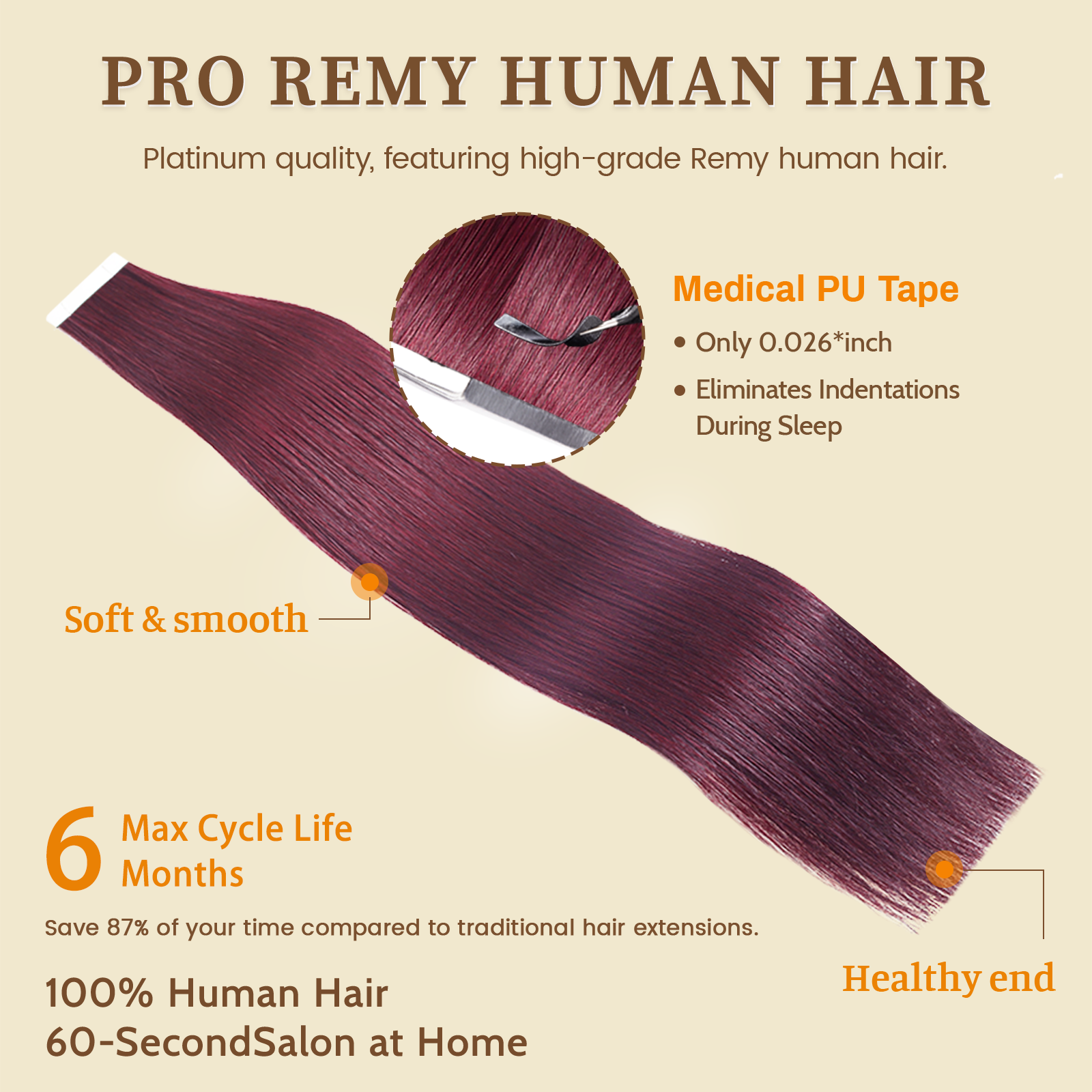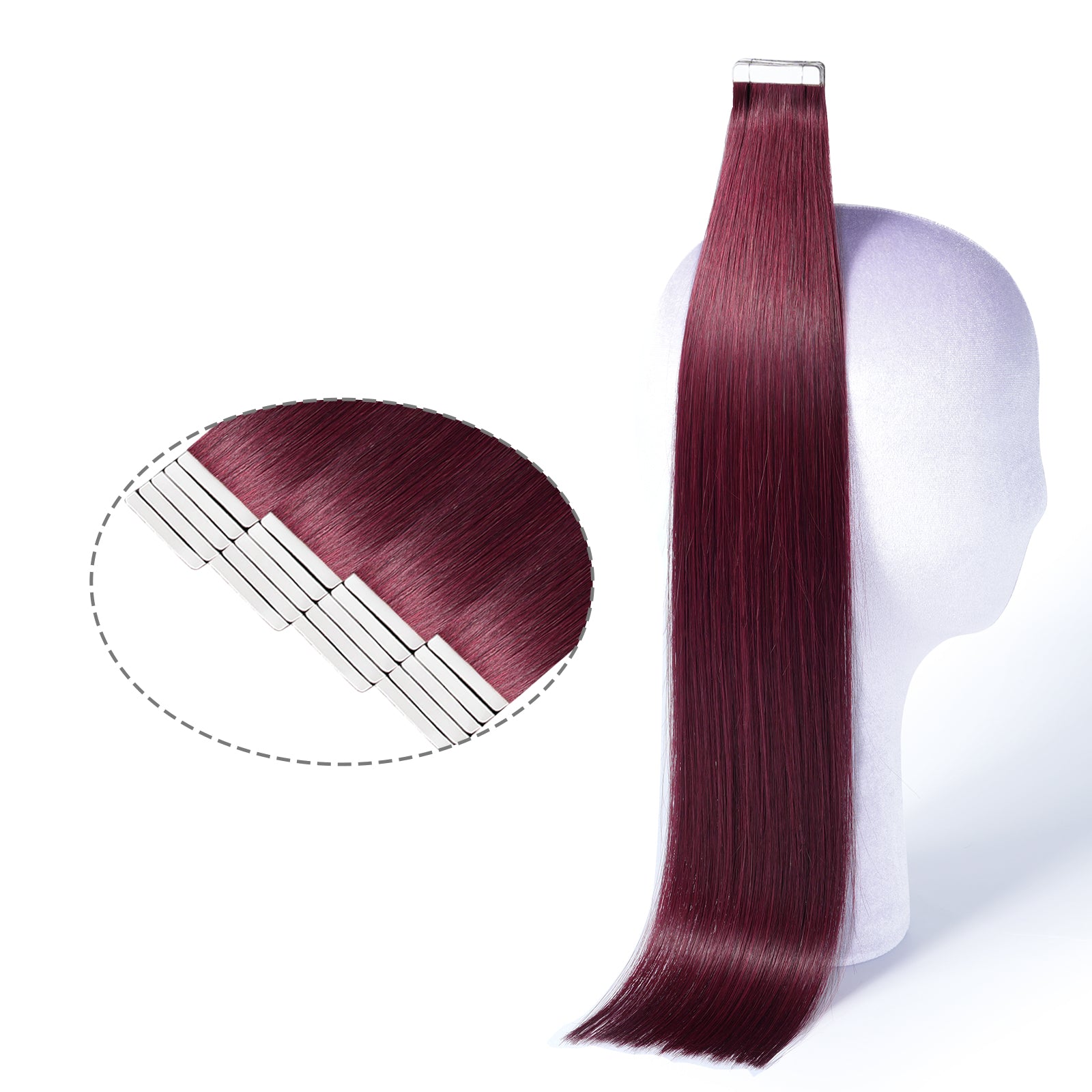 DNE Tape in Hair Extensions Real Human Hair 20Pcs/50g/Pack Seamless #99j Wine Red Dark Color Straight Invisible Double Sided Tape in Hair Extensions for Women/Girls (#99J)